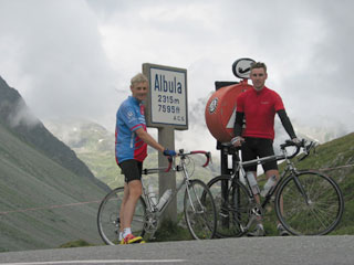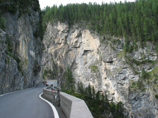 Introduction. There were several reasons to choose the Albula Pass for rounding off our 2004 cycling tour. It offered a nice break on the return-journey, it is one of the classic and most scenic passes in the Swiss Alps, and it gave the opportunity to have a closer look at the world-famous Albula Bahn. The Albula Pass, constructed in 1865, was at that time the most important north-south connection in Graubünden. Nowadays most of the traffic from Chur to Sankt Moritz uses the Julier Pass, which is a blessing for cyclists who prefer the more attractive Albula Pass. For the communities in the Albula valley the economic decline caused by the opening of the Julier Pass was compensated by the completion of the Albula Bahn in 1903, The Albula Bahn is a unique masterpiece of railway engineering. The 1000 mm narrow gauge track climbs from Tiefencastel (887m), via Bergün (1372 m) to Preda (1788 m), where it enters an almost 6 km long tunnel towards Samedan and St. Moritz. Especially the section from Bergün to Preda is spectacular, with its four loop tunnels and four viaducts that cross the Albula valley. Details and photos are given on the Albula Bahn page. The Albula Pass road and Bahn