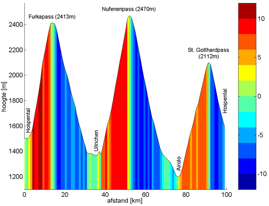 hot shower was a blessing. Some figures:  Navigation: Start page | Day 1-3: Schwarzwald | Day 5: Oberalp-Göscheneralpsee | Day 6: Susten-Grimsel-Furka | Finally | Map of Central Switzerland (appears in separate window).   The gradient profiles of the trips